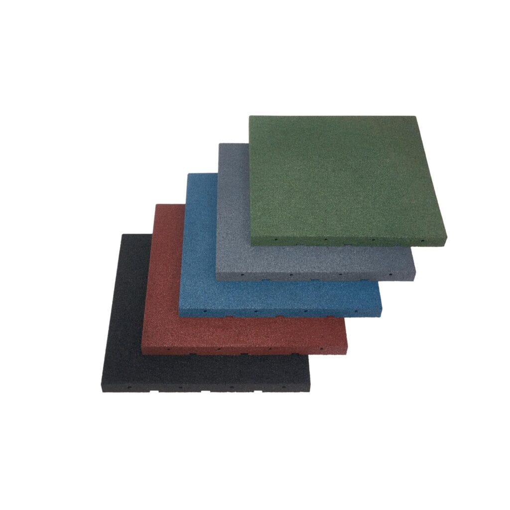 Płyty gumowe SBR pod basen posiadają atest PZH oraz klasę antypoślizgowości R11, a także spełniają wszystkie warunki określone w najnowszej normie unijnej: PN-EN 1177+A1:2024-05. Ponieważ są dostępne aż w 5 kolorach (czarny, czerwony, niebieski, szary, zielony), można z nich tworzyć estetyczne kompozycje.